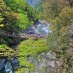 에메랄드 그린 색의 강물 위로 하얗게 깎아지른 화강암이 솟아올라 험준하면서도 아름다운 경관을 자아내고 있습니다. 주변에는 호텔과 음식점, 상점 등이 있어 기소 관광의 숙박지로도 추천할 만합니다.