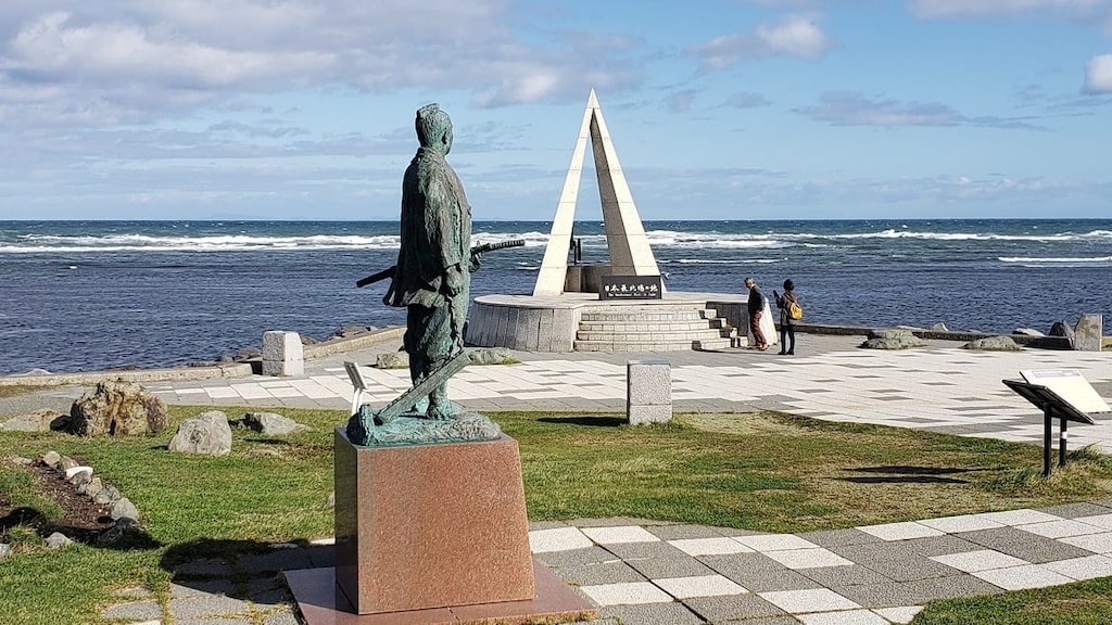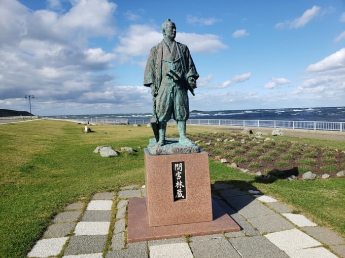 바로 옆에는 에도 시대 지리학자 마미야 린조의 동상이 있습니다. 그는 이 소야 지역에서 사할린(가라후토)으로 건너가, 사할린이 섬이라는 사실을 밝혀낸 인물입니다. 그의 이름은 ‘마미야 해협’(러시아어명: 타타르 해협)에 그대로 남아 있습니다.