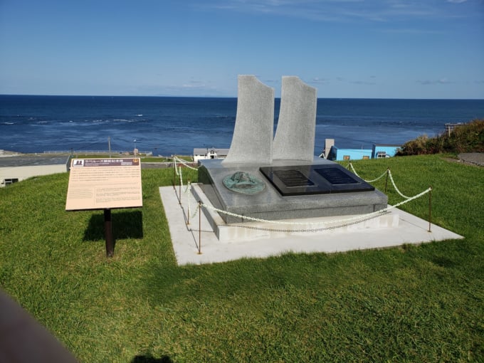 태평양 전쟁 중 소야 해협에서는 수많은 군함과 잠수함이 침몰했습니다. 이 ‘소야 해역 해군 전몰자 위령비’는 그 희생자였던 승조원들을 추모하기 위한 위령비입니다.