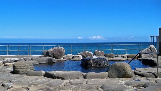 욕탕은 남녀 분리이며, 한 번에 30~40명이 입욕할 수 있는 넓은 규모입니다. 온천수는 중탄산나트륨 함유 식염천, 약한 식염천으로, 피부병과 신경통 등에 효능이 있는 것으로 알려져 있습니다. 파도 가까이에 있는 온천이기 때문에 날씨가 나쁘거나 파도가 높을 경우에는 휴장할 수 있습니다. 옆에는 수영장이 있어, 여름 시즌에는 온천과 수영장을 함께 즐길 수도 있습니다. 거센 파도가 밀려오는 해안가에서의 호화로운 온천 타임을 만끽해 보시기 바랍니다.