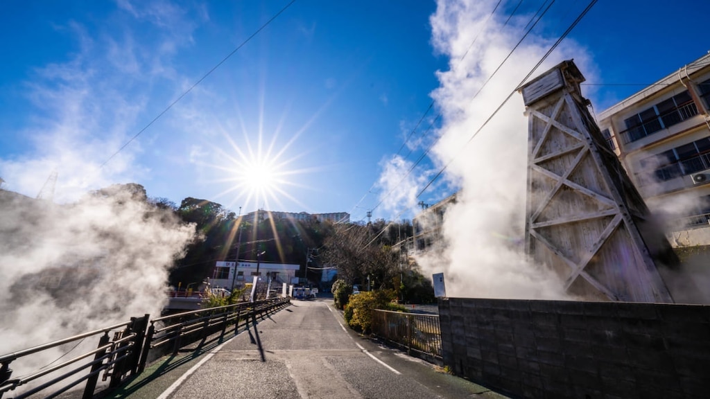 시즈오카현 히가시이즈초의 '아타가와 온천'은 에도성을 축조한 것으로 유명한 오타 도칸(太田道灌)이 발견했다고 전해지는 유서 깊은 온천지입니다. 온천 마을 곳곳에서 피어오르는 수증기와 장작을 쌓은 듯한 탑 구조물이 인상적이며, 이곳만의 온천 분위기를 더욱 고조시켜 줍니다.