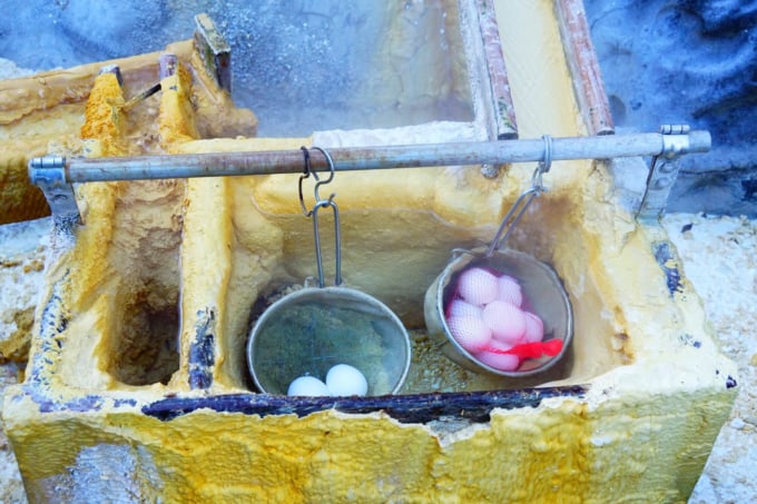 이곳을 방문하신다면 온천 달걀도 만들어 보시기 바랍니다. 이 지역의 온천은 부글부글 소리를 내며 활기차게 솟아오르며, 원천 온도는 약 100도입니다. 이 뜨거운 온천수를 활용해 온천 달걀을 만들 수 있는데요, 화상에 주의하시기 바랍니다. 달걀은 아타가와 온천 관광협회나 온천 료칸 등에서 구입할 수 있습니다.