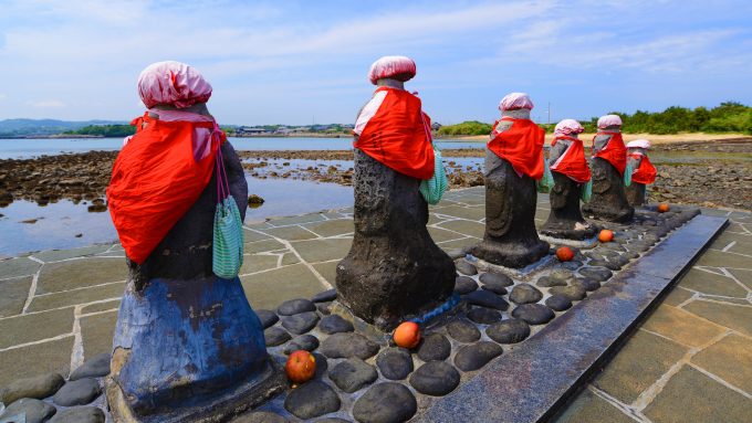 이키섬 동부의 야하타우라는 성게 등 해녀 어업으로 유명한 지역입니다. 이곳 바닷가에는 '하라호게 지장'이 자리하고 있어 방문해 볼 만한 명소입니다.