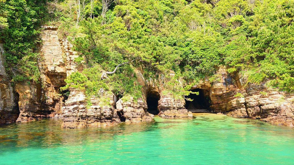 다쓰노시마 관광 유람 크루즈는 먼저 다쓰노시마 해수욕장의 잔잔하고 아름다운 해변을 방문하는 것으로 시작됩니다. 이후 겐카이나다의 거친 파도가 깎아 만든 절벽과 기암을 따라 탐방하는 일정입니다.