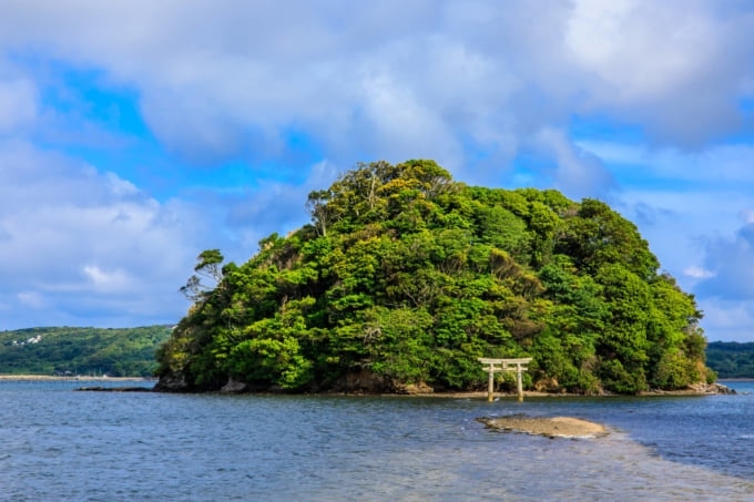 만조 때는 바다 위에 떠 있는 섬이지만, 간조 때가 되면 참배길이 드러나 걸어서 건널 수 있습니다. 이러한 특징 때문에 '이키의 몽생미셸'이라 불리며, 강한 기운을 느낄 수 있는 파워 스팟으로도 유명합니다.