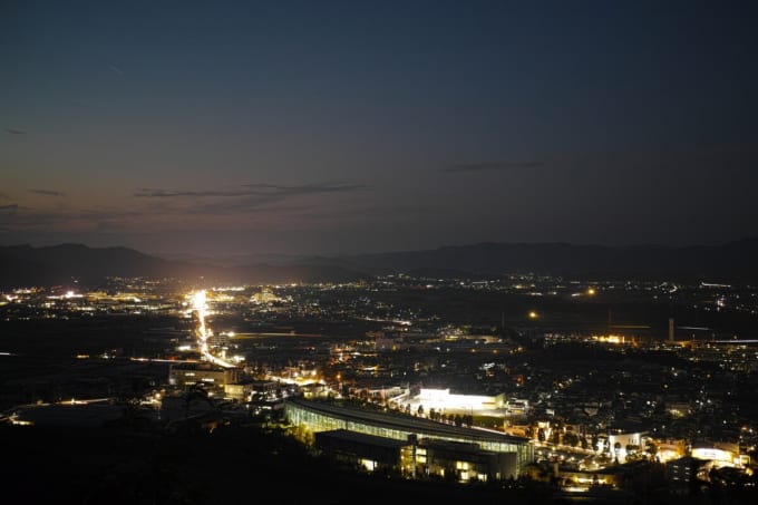 가메오카 평화대공원(亀岡平和台公園)에 있는 전망대에서는 가메오카 시내 전경을 한눈에 볼 수 있습니다. 특히 야경이 인상적입니다. 고층 건물이 거의 없는 전원 지대이기 때문에, 탁 트인 시야 속에서 반짝이는 불빛이 만들어내는 따뜻한 풍경을 감상할 수 있습니다.