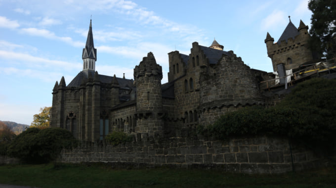 넓은 공원 안에는 뢰벤부르크 성이라는 네오고딕 양식의 성도 있습니다. 18세기 말에 세워졌으며 스코틀랜드 고성을 모델로 했습니다.