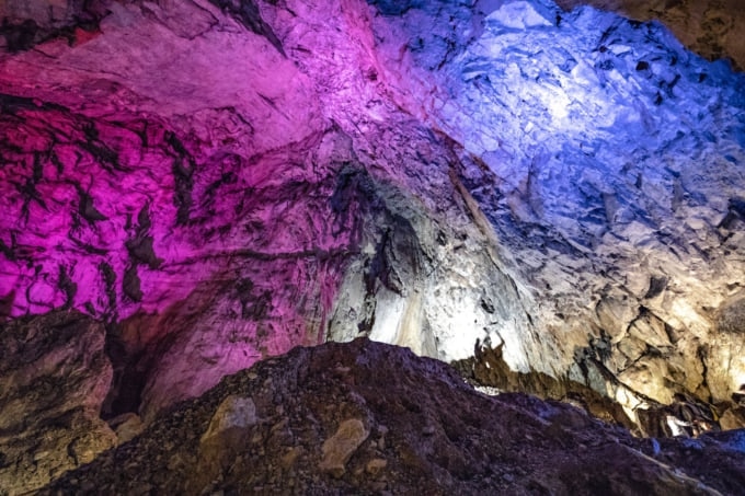 니히라 종유동은 원래 산악 신앙의 성지로 여겨졌던 곳으로, 입구의 절벽부터 압도적인 분위기를 자아냅니다. 내부에는 천장에서 수많은 종유석이 빙柱처럼 뻗어 있으며, 컬러 조명으로 더욱 환상적인 분위기를 연출합니다. 또한 물방울이 떨어지며 비파 소리처럼 들리는 ‘스이킨쿠쓰(水琴窟)’도 있어 신비감을 더해줍니다.