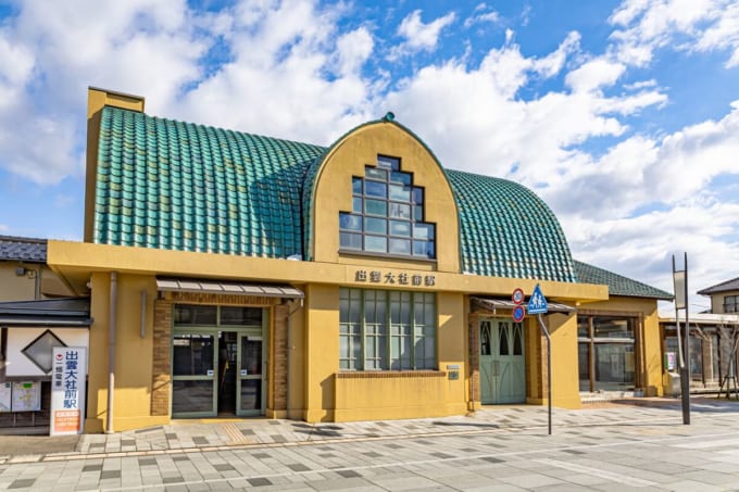 이치바타 전철(一畑電車) ‘덴테츠 이즈모시역(電鉄出雲市駅)’은 JR ‘이즈모시역(出雲市駅)’에 인접해 있습니다. 이치바타 전철을 이용하면 ‘덴테츠 이즈모시역’에서 ‘이즈모타이샤마에역(出雲大社前駅)’까지 약 23분 만에 이동할 수 있습니다.