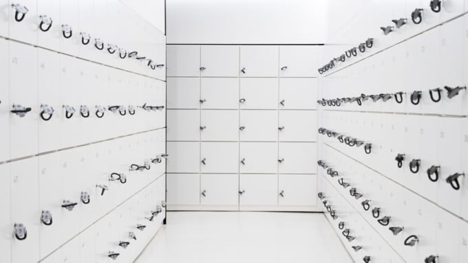 전망대에는 짐을 들고 들어갈 수 없기 때문에, 46층에 있는 무료 코인락커에 모든 소지품을 맡겨야 합니다. 락커는 100엔 동전을 넣어 사용하는 방식으로, 사용 후에는 동전이 반환됩니다. 근처에는 동전 교환기도 마련되어 있습니다.