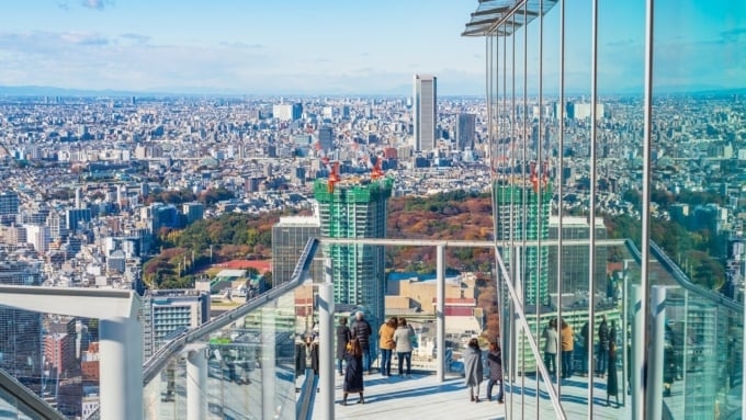 짐을 맡기고 입구에서 확인 절차를 마치면 본격적으로 전망대 ‘시부야 스카이’로 입장합니다. 문을 열고 나가면, 투명한 유리 너머로 펼쳐지는 도심 전경이 눈앞에 펼쳐져 감탄이 절로 나옵니다. 다만 날씨에 따라 바람이 강할 수 있으므로, 좀 더 여유롭게 감상하고 싶다면 에스컬레이터를 타고 한 층 위인 47층으로 올라가는 것을 추천합니다.