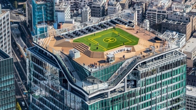 전망대 중앙에는 헬리콥터 이착륙장이 설치되어 있으며, 옥상이라는 사실이 잊힐 만큼 넓고 공원 같은 분위기를 자아냅니다.
