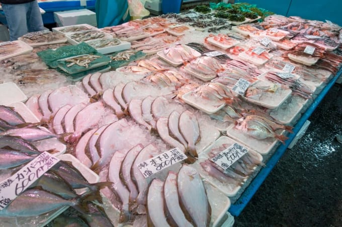 시장 부지 안에는 식당들도 여럿 모여 있어, 항구에서 바로 들여온 해산물을 그 자리에서 맛볼 수 있습니다. 회전초밥집부터, 이 지역 특산 요리인 아귀 냄비(안코 나베)를 맛볼 수 있는 식당까지 선택지가 다양해 어디에 들어갈지 고민될 정도입니다. 또한, 큰 생선을 손질하는 해체 쇼를 가까이에서 볼 수 있는 코너도 있어 관광객에게 인기가 많습니다. 신선한 생선뿐만 아니라, 건어물, 미린 간장에 절인 생선(미린보시), 쓰쿠다니 같은 가공품도 잘 갖춰져 있어 집에서 간편하게 즐길 수 있는 상품을 고르기에도 좋습니다.