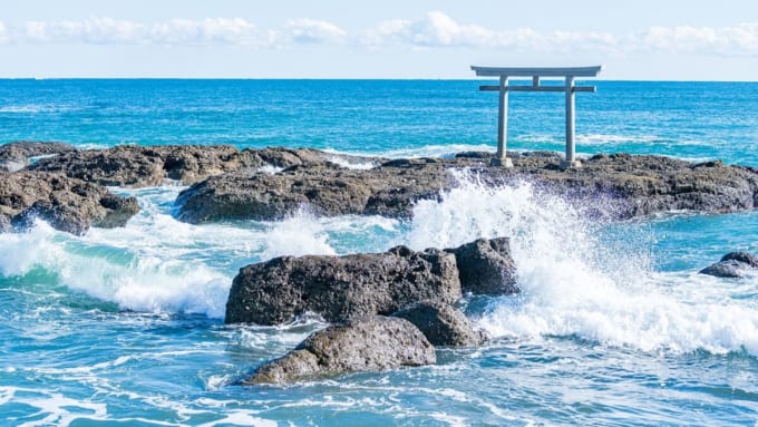 한편 이곳은 누구나 사진을 찍고 싶어질 만큼 신비로운 풍경으로도 유명합니다. 계단을 따라 올라가면 태평양과 해안선을 내려다보는 시원한 전망이 펼쳐집니다. 특히 바위 위에 세워진 토리이는 이 신사의 상징적인 풍경으로, 파도와 바위, 토리이가 어우러진 장면은 그 자체로 매우 신비로운 분위기를 자아냅니다.