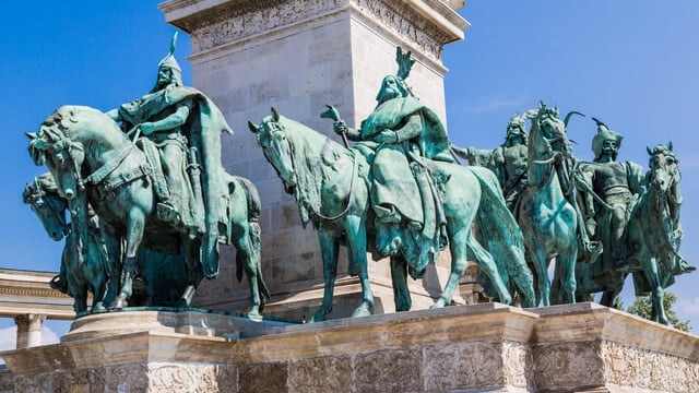 반원 형태의 주랑 가운데 왼쪽에는 초대 국왕 이슈트반 1세, 부다성을 건설한 벨러 4세, 한때 빈까지 공격해 점령하기도 한 마차시 1세 등 헝가리를 대표하는 명군들의 조각상이 세워져 있습니다. 오른쪽에는 헝가리의 역사를 장식한 정치가와 장군들의 상이 늘어서 있습니다. 영웅광장 뒤편은 시민공원으로 조성되어 현지인들의 휴식 공간 역할을 합니다. 광장 주변에는 세체니 온천을 비롯해 서양미술관, 신미술관, 바이다후냐드 성 등 주요 관광 명소도 가까이 모여 있어 함께 둘러보기 좋습니다.