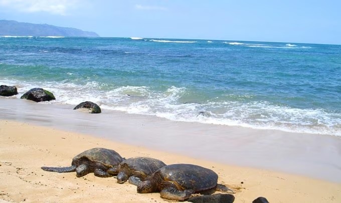 노스쇼어의 네 번째 추천 촬영 스폿은 ‘라니아케아 비치’입니다. 노스쇼어의 할레이바에 위치한 이 해변은 파도와 바다가 아름다워 하루 종일 머무르고 싶어지는 곳입니다.