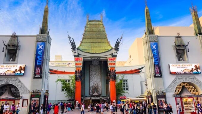 차이니스 시어터는 중국의 사원을 닮은 외관이 아름다운 영화관입니다. 신작 영화의 월드 프리미어 등, 유서 깊은 영화 관련 행사가 자주 열리기 때문에 시어터 앞에는 붉은 카펫이 깔려 있습니다. 세계에서 가장 빨리 신작 영화를 볼 수 있는 영화관이기도 합니다.