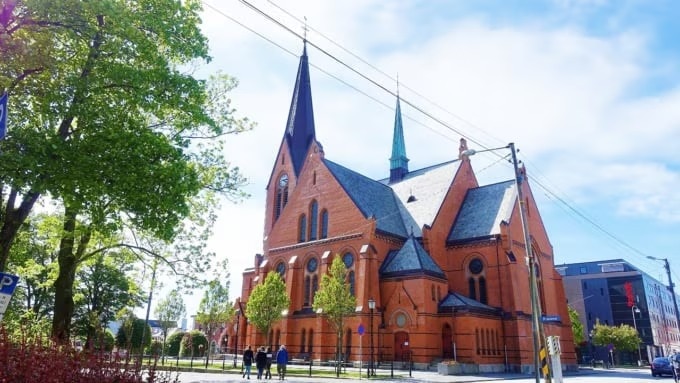 이곳은 헤우게순 중심부에 우뚝 서 있는 역사 깊은 교회 Vår Frelsers Church입니다. 위엄 있는 외관은 마치 도시를 지키고 있는 듯한 존재감을 드러냅니다. 건축가 Elnar Halleland의 설계로 1901년에 완공된 건물로, 내부에는 아름다운 독일산 스테인드글라스와 거대한 파이프오르간, 왕관을 모티브로 만든 높이 11미터의 샹들리에 등 볼거리가 가득합니다. 1250석의 좌석이 마련되어 있어 넉넉한 공간에서 조용히 시간을 보낼 수 있습니다.