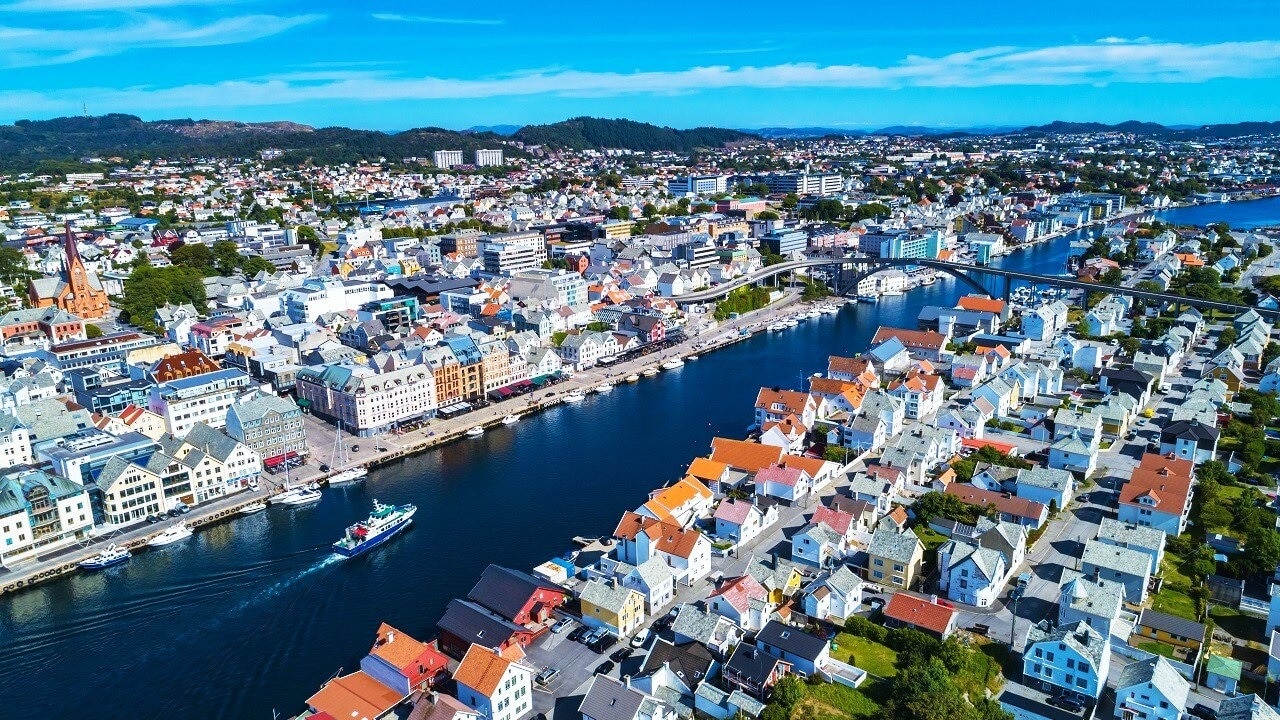 노르웨이 서쪽 끝에 위치한 도시 헤우게순은 북해와 가까운 곳에 자리한 인구 약 3만 명 규모의 도시입니다. 지금은 조용하고 작은 도시지만, 초대 노르웨이 왕인 ‘미발왕 하로알드’가 거처를 두었다고 전해지는 곳으로, 고대 바이킹 시대의 노르웨이 중심지였던 장소입니다. 근대에는 북해에서의 청어 어업 등으로 크게 번영했습니다. 현재는 청어 자원이 감소하면서 어업은 쇠퇴했지만, 북해 유전 덕분에 석유 산업에 종사하는 시민이 다수 거주하고 있습니다.