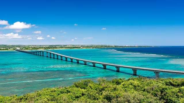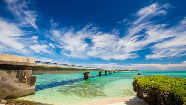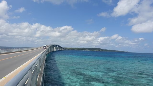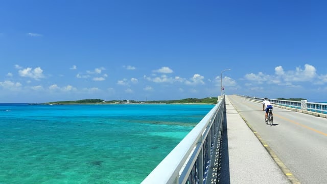 미야코지마와 이라부지마를 잇는 이라부대교는 총길이 3,540m로, 무료로 통행할 수 있는 다리로는 일본에서 가장 긴 다리입니다. 그래서 렌터카나 버스로 이동하는 것이 편리하지만, 자전거로 이동하는 것도 좋은 방법입니다. 미야코 공항에서 이라부지마까지 자전거로는 약 30분 정도 걸리므로 생각만큼 긴 시간이 들지 않습니다.