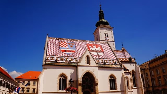 ‘성 마르코 교회’는 빨강·흰색·파란색 타일이 이어진 모자이크 지붕이 매우 인상적인 교회입니다. 구시가지 골니그라드(옛 그라데츠) 지역에 있으며, 13세기 중엽에 건축된 카톨릭 교회입니다.