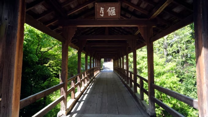 ‘엔게쓰교’는 도후쿠지에서 가장 상류, 동쪽에 놓인 중요문화재 다리로, 통천교나 와운교에 비해 비교적 혼잡이 적어 단풍 감상과 사진 촬영을 여유 있게 즐길 수 있는 숨은 명소입니다.
