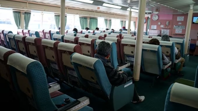 항해 중에는 전 좌석 안전벨트 착용이 의무이므로 전석 지정 좌석제로 운영됩니다. 착석 후 안전벨트를 착용하고 출항을 기다립니다.