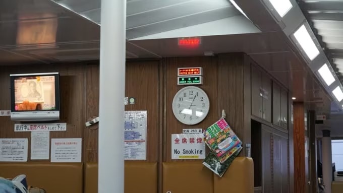 ‘제트포일은 많이 흔들리지 않을까’ 걱정하는 경우도 있지만, 실제로 탑승해 보니 흔들림은 거의 느껴지지 않았습니다. 오히려 ‘안전벨트까지 필요할까’라는 생각이 들 정도였습니다. 다만 선내 안내 방송에 따르면, 장애물을 피하는 상황 등에서는 급선회나 급감속이 발생할 수 있어 안전을 위해 착용이 필요하다고 합니다.