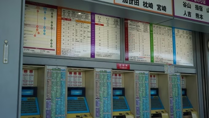 버스 안내소와 승차권 발매기는 출구를 나와 바로 왼쪽에 있습니다. 승차권은 발매기나 창구에서 구입할 수 있으며, 차내에서 요금 지불도 가능합니다. 결제는 현금 외에 교통계 IC 카드인 Rapica와 이와사키 카드도 사용할 수 있습니다.