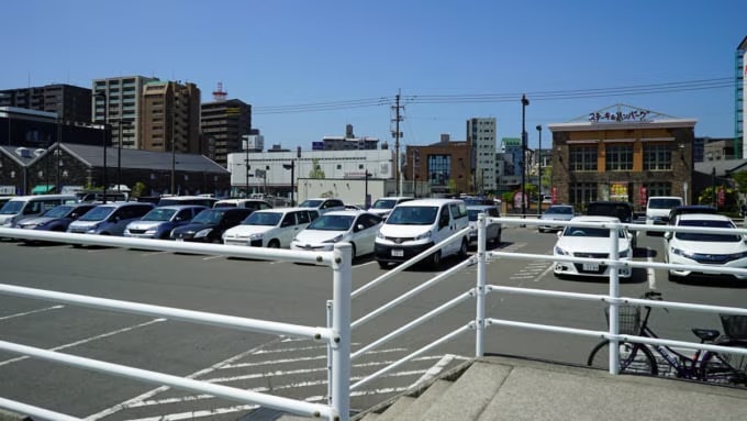 도로 건너편 서쪽에는 주차장이 있습니다.