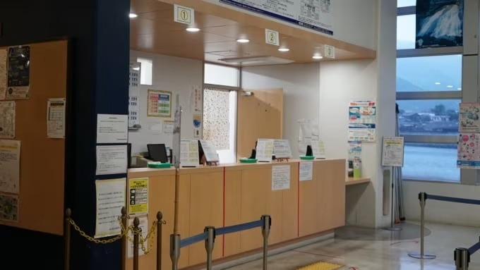 터미널 내부에는 좌석 지정 및 티켓 판매 창구가 있으며, 대합실 앞쪽에서는 TV 방송이 상영됩니다. 터미널 안에서도 사쿠라지마를 감상할 수 있습니다.