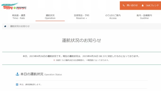 명칭: 다네야쿠고속선 운항 상황 / 種子屋久高速船 運航状況