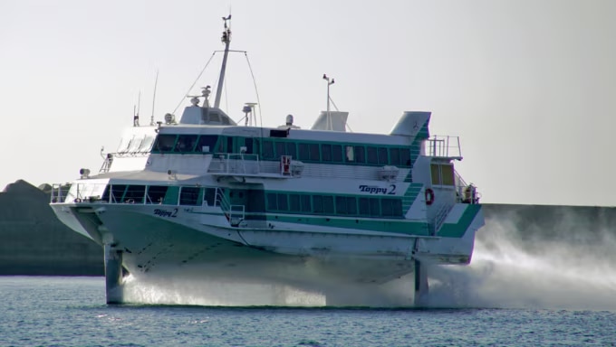 현재 일본에서 운항 중인 제트포일은 약 20척에 불과해 매우 희소합니다. 직접 탑승해 보면 일반 선박과는 다른 항해 감각을 느낄 수 있습니다.