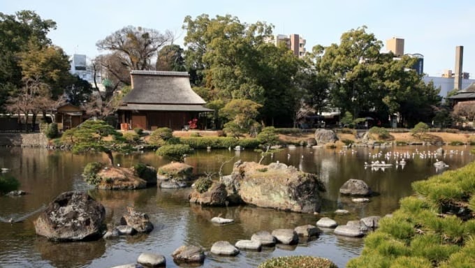 구마모토시에 있는 수이젠지 조취원(水前寺成趣園)은 히고 호소카와번의 초대 번주인 타다토시 공이 매사냥을 왔을 때 이곳을 무척 마음에 들어 하여 '수이젠지 오차야(찻집)'를 세운 것이 시작입니다.