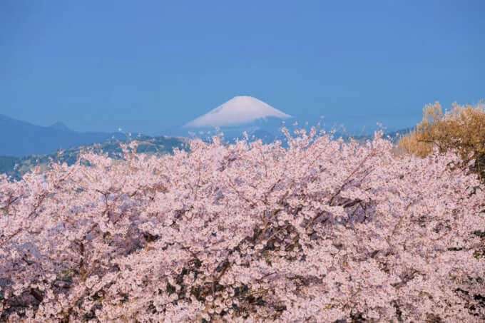 가나가와현 니노미야마치에 위치한 아즈마산 공원은 해발 136미터의 전망대에서 후지산과 하코네, 단자와 산맥, 사가미만까지 한눈에 조망할 수 있는 절경 명소입니다. 봄에는 드넓게 펼쳐진 유채꽃밭과 함께 소메이요시노와 후지산이 어우러진 장면을 감상할 수 있어, 일본의 아름다움을 상징하는 풍경이 펼쳐집니다.