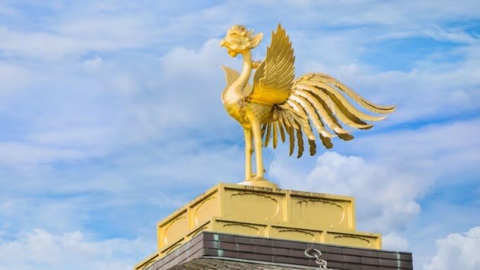 그리고 금각의 정상에 장식되어 있는 것이 봉황(鳳凰)입니다. 소설 ‘금각사’에서 미시마 유키오가 표현한 ‘이 금빛 봉황은 빛나는 날개를 펼쳐, 영원히 시간 속을 날고 있다’라는 구절이 떠오릅니다.