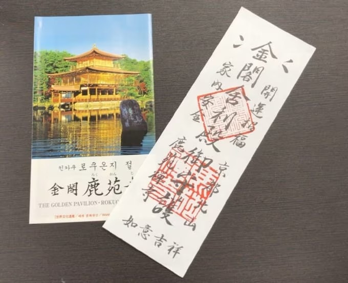 킨카쿠지(金閣寺)의 참배권은 관광객들에게 인기가 많은 부적 형태입니다. 부적에는 ‘금각사리전 어수호’라고 적혀 있습니다. 킨카쿠지를 참배하며 부적을 받을 수 있다는 점은 여행객에게 기분 좋은 선물이 됩니다. 받은 부적은 소중히 집으로 가져가시길 바랍니다.