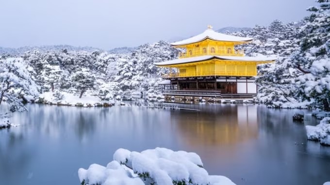 교토는 분지 지형으로 인해 겨울철에는 바닥부터 냉기가 올라오는 추위가 있어 관광에 적합하지 않다고 여겨지기도 합니다. 그러나 눈을 머금은 금각은 평소와는 다른 분위기의 아름다움을 보여주며, 뉴스로 소개될 정도로 인상적인 풍경을 자아냅니다.