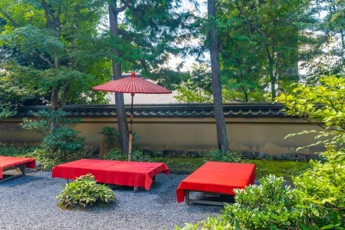 다실 유카테이(夕佳亭) 근처에 있는 ‘금각사 후도카마 차소(金閣寺不動釜茶所)’에서 화과자와 말차를 즐겨보는 것은 어떨까요?