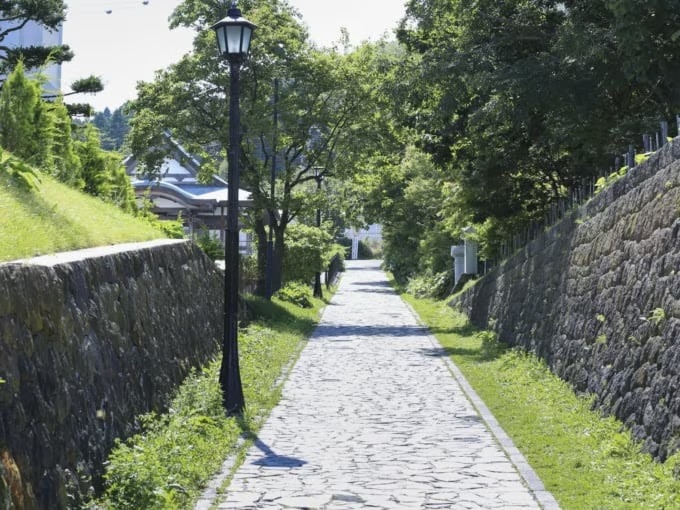 ‘일본의 길 100선’에 선정된 다이산자카는 하치만자카와 나란히 동쪽에 위치한 언덕길입니다. 가로수와 돌바닥 길, 그 양옆으로 늘어선 일본식과 서양식이 어우러진 건물들이 조화를 이루는 풍경이 인상적입니다.