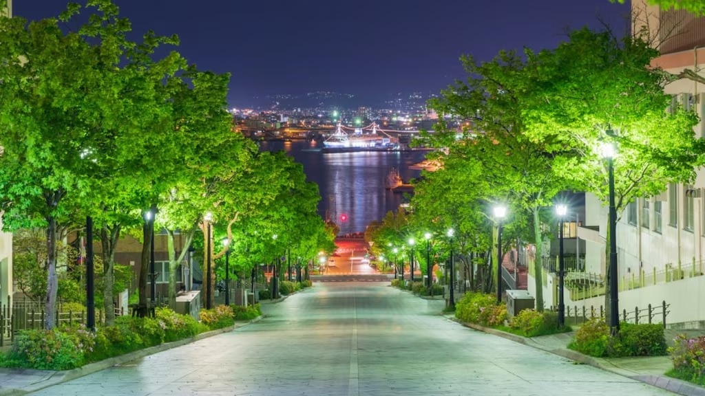 하치만자카는 하코다테산과 함께 인기 있는 야경 감상 명소입니다. 맑은 날의 푸른 하늘과 바다 풍경도 훌륭하지만, 주변이 어두워지고 가로등이 하나둘 켜질 무렵에는 로맨틱한 분위기가 감돕니다.
