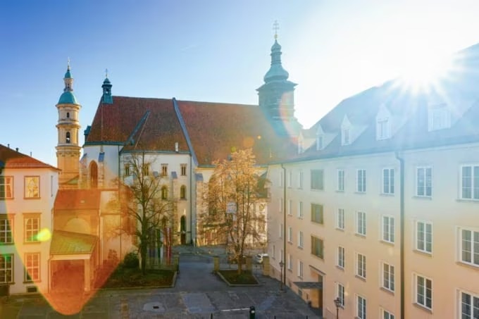 그라츠의 거리 풍경 속에 조용히 자리한 단정한 교회이지만, 내부로 들어서면 외관과는 전혀 다른 분위기에 놀라게 됩니다. 곳곳에 섬세하고 우아한 장식이 더해진 예배당은 세계유산에 걸맞은 압도적인 아름다움을 자랑합니다. 벽면에 남아 있는 프레스코화는 1485년에 그려진 것으로, 그라츠에 현존하는 회화 작품 가운데 가장 오래된 것으로 알려져 있습니다. 규모는 크지 않지만, 충분한 시간을 들여 방문할 가치가 있는 장소입니다.