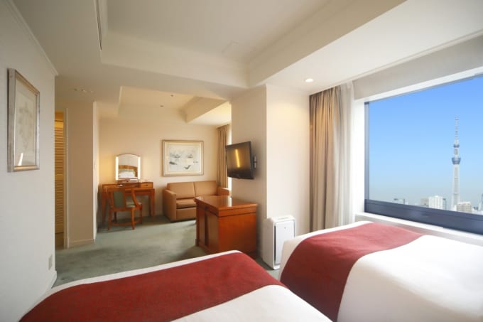 도쿄 고토구에 위치한 이 호텔은 19세기 유럽을 테마로 한 럭셔리한 인테리어가 특징입니다. 스카이트리가 보이는 시티뷰 객실과 일식·양식·중식을 아우르는 고품격 레스토랑이 강점입니다.