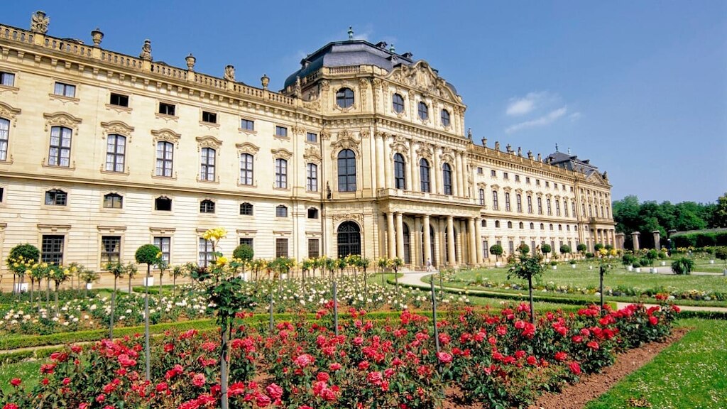 독일 중부에 위치한 도시 뷔르츠부르크의 상징인 **뷔르츠부르크 주교관(레지덴츠)**은 정원을 포함해 세계유산으로 등재된 명소로, 많은 관광객이 찾는 인기 관광지입니다.