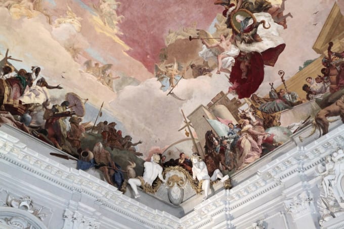 교회 좌우에는 제단화가 설치되어 있는데, 이는 주교관 ‘계단의 방’에 있는 세계 최대 규모의 천장 프레스코화를 그린 화가 티에폴로의 작품입니다.