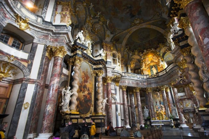 내부 역시 외관 못지않게 화려합니다. 마차가 드나들던 높은 천장의 ‘현관 홀’을 시작으로, 세계 최대 규모의 프레스코화와 기둥 하나 없이 설계된 ‘계단의 방’, 바닥 전체가 모자이크로 장식되고 녹색 벽이 인상적인 ‘그린 룸’ 등 각 공간마다 볼거리가 가득합니다.