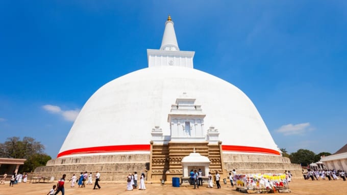 스리랑카의 새파란 하늘과 대비되는 백색 대탑의 광경은 그야말로 압권입니다. 대탑 주변에는 지금도 흰 옷을 입고 정성스럽게 기도를 올리는 현지 순례자들의 모습을 많이 볼 수 있습니다.