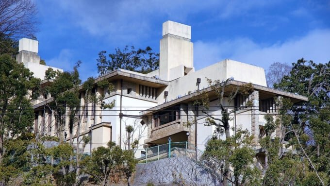 요도코우 영빈관은 20세기 최고의 건축가라 불리는 프랭크 로이드 라이트가 설계한 건물로, 다이쇼 시대에 지어진 국가 지정 중요문화재입니다. 본래 나다 지방의 양조가였던 야마무라 가문의 별장으로 지어졌으며, 전후에는 연합군(진주군)의 사교장으로도 활용되었습니다.