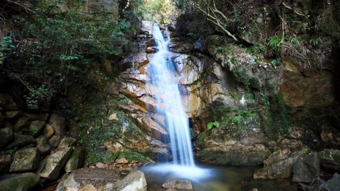 가장 일반적인 등산로는 코우자의 폭포에서 출발하여 '카자후키 바위(바람 부는 바위)'를 목표로 하는 1시간 정도의 코스입니다. 쇠사슬이나 사다리가 잘 정비되어 있어 자연 속 애슬레틱처럼 아이들도 안심하고 암벽 타기 체험을 즐길 수 있습니다. 주변에는 야생 멧돼지가 서식하고 있어 운이 좋으면 만날 수도 있습니다.
