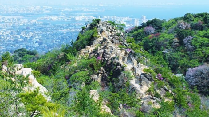 카자후키 바위에서 롯코산 최고봉으로 향하는 길은 가벼운 하이킹 느낌으로 오를 수 있습니다. 정상에서 아리마 온천 방면으로 내려가 온천에서 땀을 씻어내는 코스도 추천합니다.